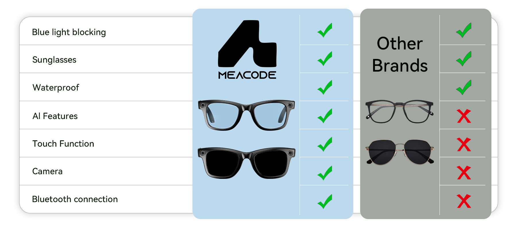 Drive safely, stay connected. Meacode smart glasses let you easily take calls while driving, without distraction.With Bluetooth connectivity, you can answer incoming calls with a simple tap on the temple, keeping your hands on the wheel and your eyes on the road. Every call is clear, safe, and effortless.