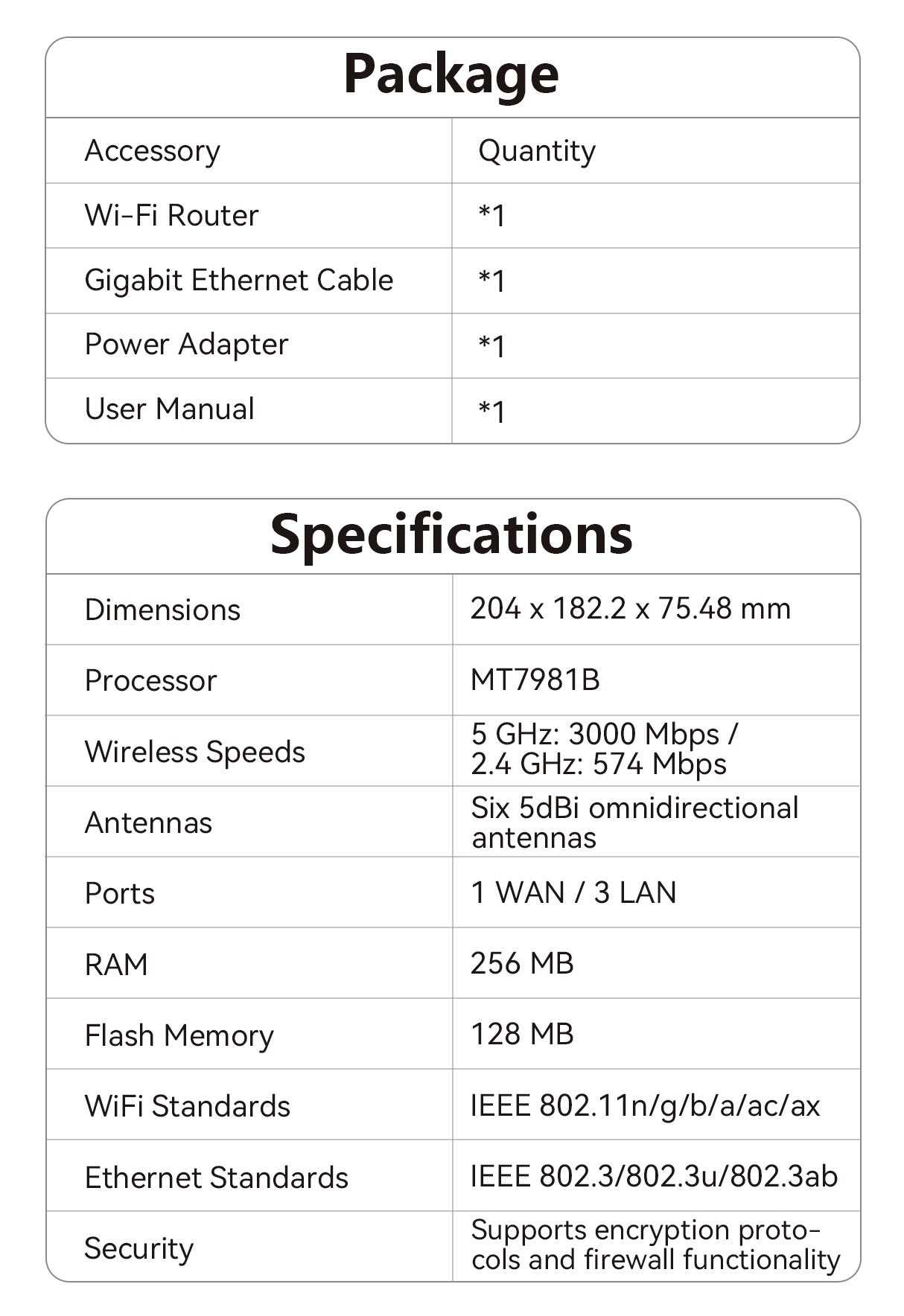 • Dual-Band Wi-Fi 6: Enjoy speeds up to 3000Mbps, 67% faster than standard routers.