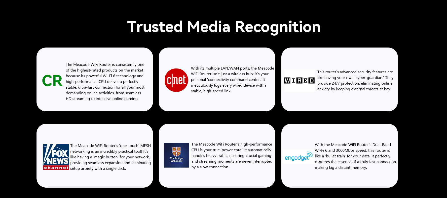 The result is the Meacode WiFi Router, built with a high-performance chip and powerful WiFi 6 technology to ensure you get a fast and stable network for every device, every time. This is Meacode’s core mission: that when it matters most, your network will never let you down.